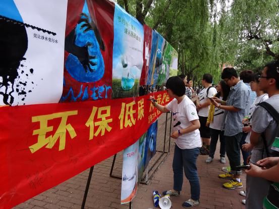 本次节能宣传活动分为节能宣传作品展示和宣传条幅签字两部分。展示环节,将前段时间举行的节能宣传作品校内选拔赛中获奖作品进行集中展示。一幅幅结合了同学们智慧及环保热情的作品极大程度上引起了大家的共鸣,配合工作人员的讲解,吸引来了不少师生驻足观看。本次展示旨在唤起广大师生的节能低碳意识,在欣赏了同学们设计的节能宣传作品之后,大家纷纷在宣传条幅上签字,表达了自己厉行节约的决心。
