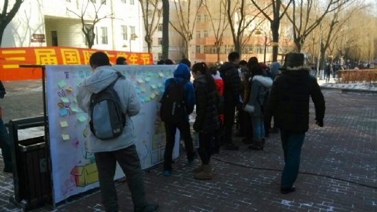 此次庆祝国际大学生节活动分为两个部分:传递祝福的工大漂流瓶活动和交流舞会。工大漂流瓶活动本着架起一二区桥梁的目的,于12月2日至3日在工大一二区同时举办。一二区的同学们都积极踊跃参加活动,精美的海报上写满了对大一同学的祝福和对一区的向往,其中还有大一同学提出的小心愿,至12月13日,一区的学长们尽自己最大努力帮助学弟学妹完成了全部心愿,传递了冬日里的温暖。