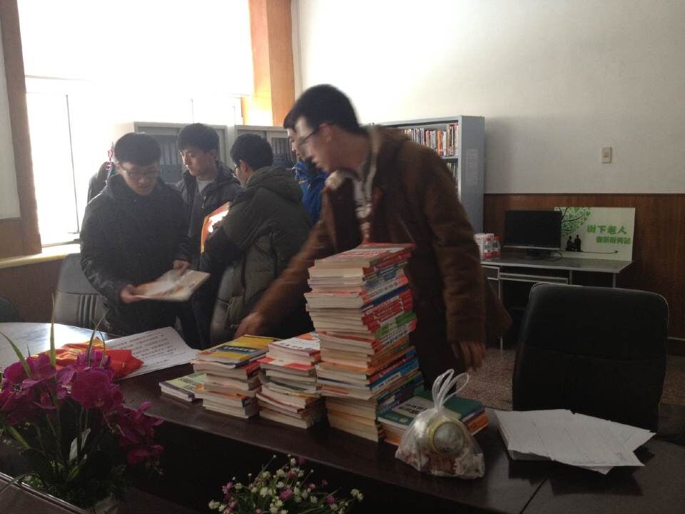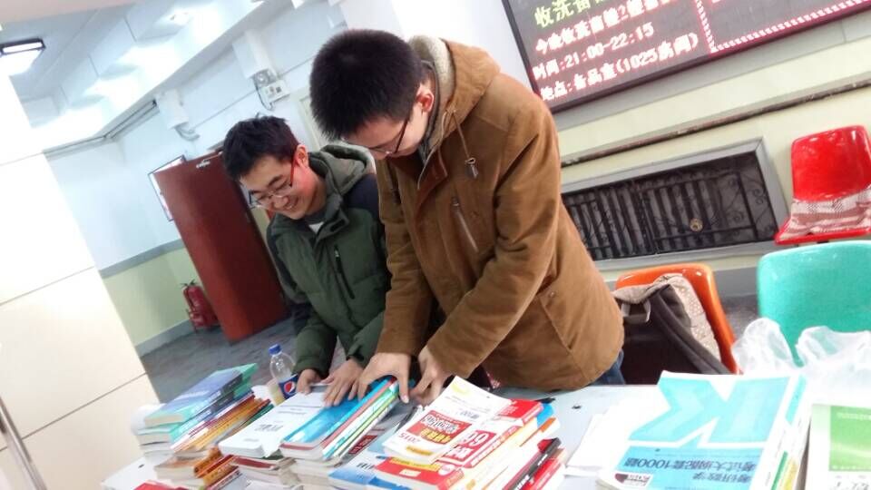 活动当天,“树下老人”考研服务站的志愿者们在各公寓大厅设立了流动募捐点,并安排专人对捐书人进行登记。热情的大四学长们,抱着一摞摞图书和资料交到志愿者手中,微笑着在登记册上写下对学弟学妹们的寄语,为他们的考研之旅加油打气。活动收集到大量书籍资料,其中包括政治知识要点、考研数学习题集、专业课复习集等考研资料。活动后,工作人员对这些图书资料进行了整理归类,存放至“树下老人”考研服务站,供全校学子免费借阅。