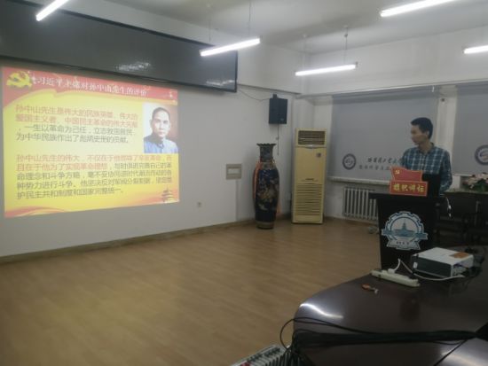 本期讲坛主题为“学习习近平在纪念孙中山诞辰150周年大会重要讲话”,五位主讲人分别围绕主题进行了精彩的演讲。其中李军章同学从孙中山先生的生平和孙中山先生的优秀精神品质两方面来讲述自己对于先生伟大之处的理解;刘磊磊同学围绕孙中山先生与中国共产党的渊源抒发了共产党人对于孙中山先生的敬仰与支持;王聪同学从弘扬革命精神,缅怀先生遗愿,反对领土分裂等多个方面进行探讨,提出了自己的见解;张敬同学从孙中山国事遗嘱出发,就孙中山先生对于强国的期盼进行了深入分析,引用先生的“凡我同志,继续努力”来激励大家;于晓滢同学则结合海内外人士对于习总书记讲话的强烈反响,谈了自己对于当代大学生如何承担责任的看法。