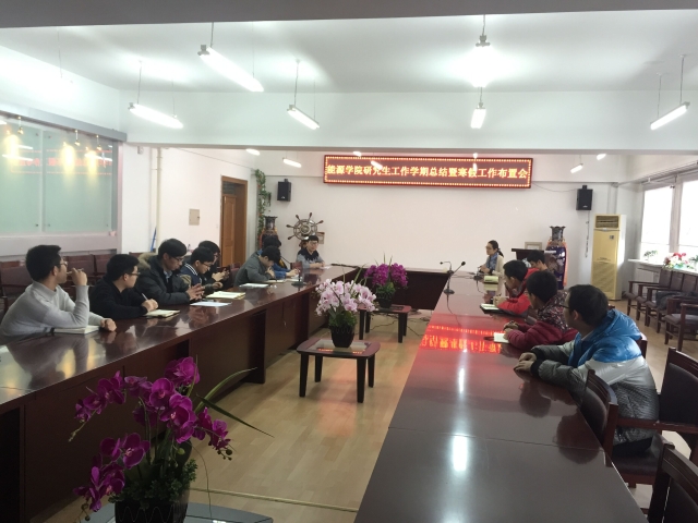 会议中,研究生各年级学生干部分别总结了2016年秋季学期班级工作情况。随后,金凤秋老师总结了研究生年级整体工作情况,并对各班级开展工作情况予以充分肯定,强调了班级、团支部建设的重点工作,以及开展学风建设及学术交流活动的重要意义,鼓励各班级结合专业方向特点和班级同学需求,开展各具特色的学术沙龙。最后,金凤秋老师布置了寒假期间安全注意事项,叮嘱学生干部关注班级同学离校和返校情况。