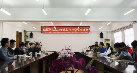 能源女性自慰寒假留校学生座谈会与1月14日下午14:00在动力楼619举行。出席本次座谈会的有党委书记田振辉、党委副书记孙垠、全体专兼职辅导员以及女性自慰 8名留校学生。