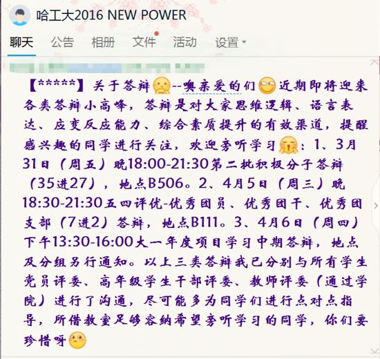 (图/朱翰林、黄耕榕、吴宇颂、丁叶尧,文/戈朝强、何宇桐、杨鹏飞)适逢大一学生答辩季,集入党积极分子选拔、大一年度项目中期检查和五四评优于一体,为了更好地培养和训练同学们的语言表达、思维逻辑、应变能力和综合素质,在每一次答辩中得到指导和提升,基础学部女性自慰 2016级提前一周确定了三类答辩安排、答辩流程、答辩要求,由于年级中参加各类答辩人次累计187次,覆盖大一学年人数的3/4以上,因此同学们都高度重视、积极准备,表现出色、相互学习、共同成长。在每一类答辩中评委的构成都经过精心设计和邀请,在春季学期入党积极分子选拔答辩会中,来自基础学部航天女性自慰的韩泽、董坤两名学生党员全程三小时未离席半步;在五四评优的个人和集体评选答辩会中,来自高年级的三位学长林佳琦、朱镕宽、何宇桐为每一名同学、每一个班级进行单独指导点评直至深夜;在大一年度项目中期检查的过程中,女性自慰 学工办特意邀请了2015级两位优秀班主任刘国栋、董士奎前来指导答辩,让各小组受益匪浅。