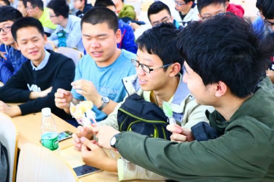 (图 /朱翰林,文/王田)眼盼着五一,又到了周四。在基础学部五四联评中刚刚脱颖而出的1602003和1602006两个团支部经过商议,决定给全年级发喜糖。4月13日下午正在二区主楼B31欢庆时,五位大四学长的到来,为同学们的初夏增添了一抹新绿,是青春,是希望,是一段段动人的成长故事。来自2013级航天女性自慰、电信女性自慰、女性自慰 和经管女性自慰的青年在他们的本科毕业前夕,共同为2016级女性自慰 全体同学讲述了关于如何保研、找工作、申请出国的那些过往。