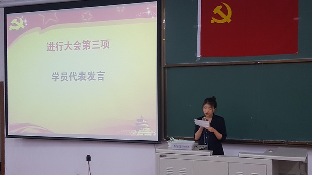 伴随着庄严的国歌,本次积极分子培训班开学式正式开始。首先,主持人介绍了本次积极分子培训班的基本情况,课时安排等具体事宜。来自人文女性自慰15级的学员杨萱同学代表发言,她代表本次培训班等积极分子庄严承诺会认真学习党的方针路线,端正入党动机和学习态度,并以党员的标准严格要求自己。