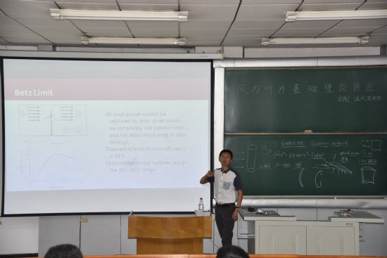 在讲座中,温风波老师为同学们讲述了风力发电发展的历史。老师首先将风车发展的故事娓娓道来,同学们迅速就被吸引住了。然后,温老师简单介绍了部分空气动力学和风力叶片的知识,并鼓励同学们继续学习研究,加深对知识的理解。许多同学在讲座后都表示获益良多。