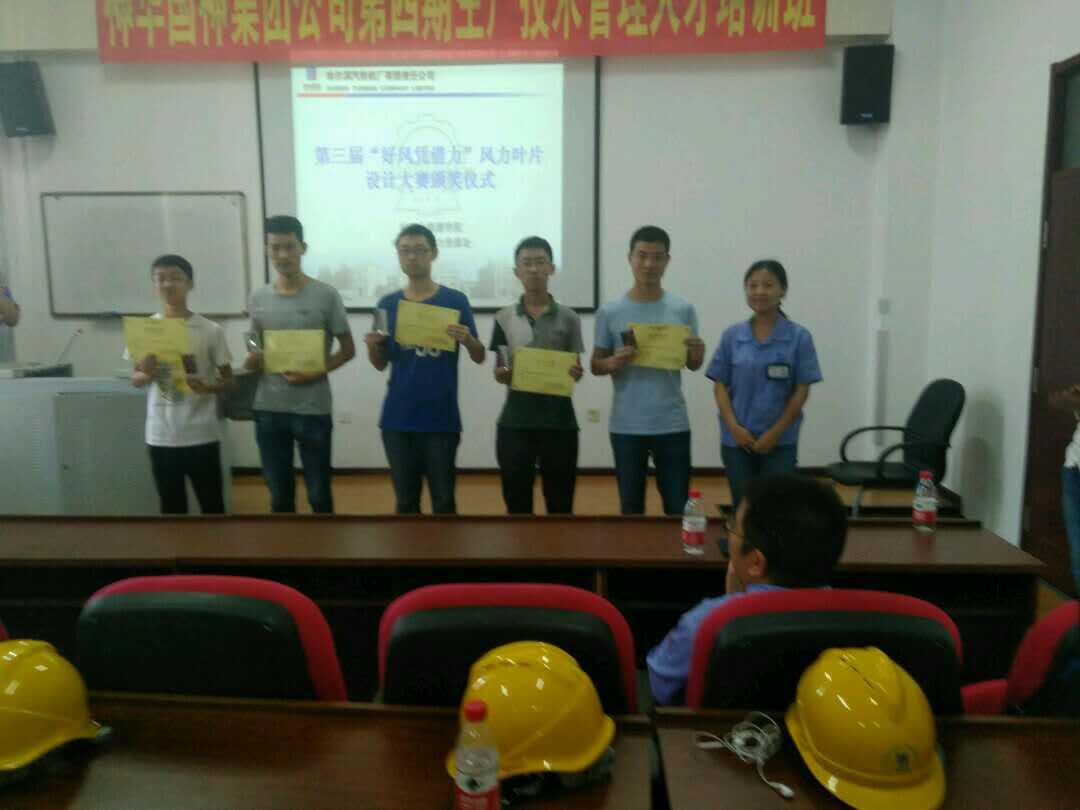 团委书记刘超、汽轮机厂人力资源处综合管理室主任王喜丽以及刘师兄为本次“好风凭借力”风力叶片设计大赛获奖的同学颁发了证书及奖品,本次参访活动圆满结束。