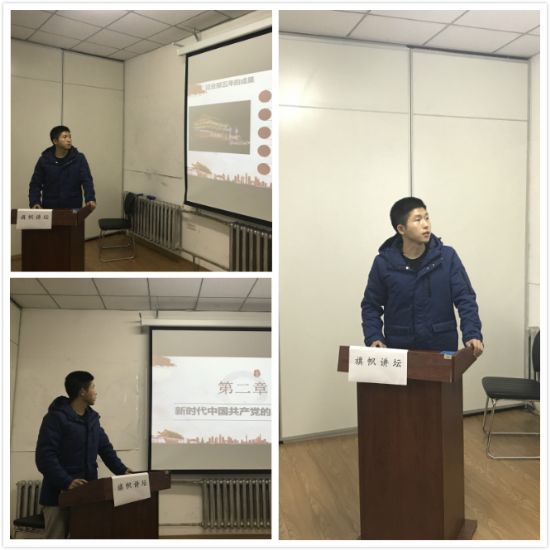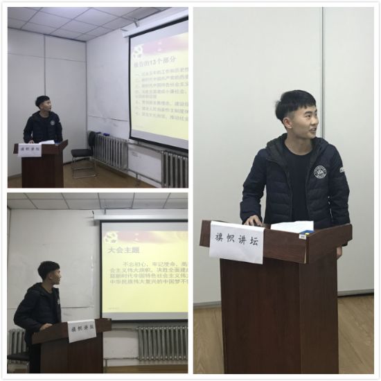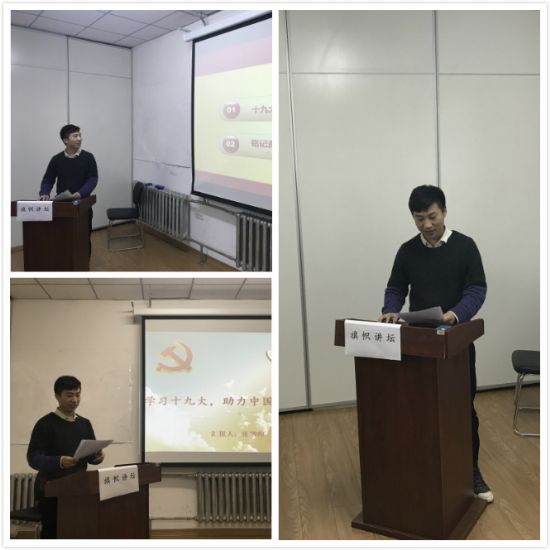 本次讲坛的主题是“不忘初心,牢记使命”。讲坛活动中,张增帅同志首先发言,他挑选了有关中国梦和当代大学生的相关内容与大家交流学习感悟,号召我们作为未来30年的中坚力量要不断努力为实现中华民族的伟大复兴努力。随后,郭宸同学则重点学习了习主席在报告中说的我国正进入一个新时代这一观点,并认识到中国特色社会主义进入新时代,在中华人民共和国发展史上、中华民族发展史上具有重大意义。李幸泰同学通过学习十九大感悟到作为女性自慰