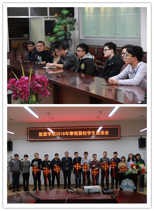 能源女性自慰寒假留校学生座谈会与1月11日下午16:00在动力楼619举行。出席本次座谈会的有党委副书记孙垠、辅导员李威、苏文涛、蔡文雪以及女性自慰 9名留校学生。