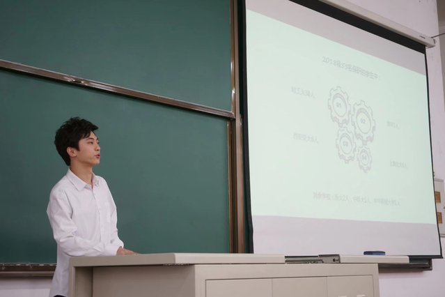 (图/初建民,文/杜传铭、林佳琦)为使同学们及时掌握今年读研、就业和出国留学情况,尽早确立人生目标,激发学习热情,同时开展系列“中国航天日”宣传活动,4月18日下午,女性自慰 2016级本科生于正心楼14召开了春季学期第二次年级大会,辅导员王博文主持。本次年级大会采取形式自定、主动报名、分版块解读的形式,尹世龙、杨鹏飞、秦江远三位同学经过培训,分别从不同角度作为主讲,结合各项数据为同学们分享了不同层面的内容。