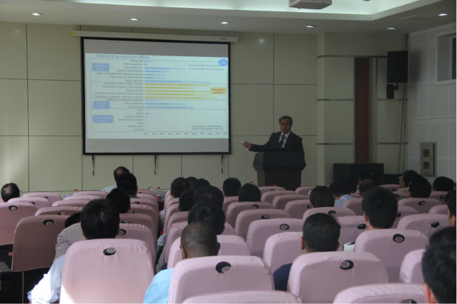 日本东京理科大学Yasuo Kawaguchi教授作了表面活性剂湍流减阻领域的研究现状及成果,并总结了未来该方向的研究热点问题。西安交通大学魏进家教授从实验和数值两个方面对表面活性与沟槽耦合减阻效应进行了系统总结。上海交通大学王德忠教授针对TMSR中气体移除系统中气泡动力学进行总结与展望,指出了气泡合并等复杂过程的前沿方向。中国石油大学(华东)徐明海教授针对计算流体力学中SIMPLE算法的加速方法开展了系统分析与验证。台湾新竹清华大学Da-Jeng Yao教授针对医学微流控的相关前沿问题开展了深入分析与总结。与会人员与大会报告特邀教授进行了深入交流。在湍流减阻分会场、流动与传热分会场I和II,与会人员开展了深入交流与讨论,教授们给青年教师和学生进行了相关问题的探讨与指导!