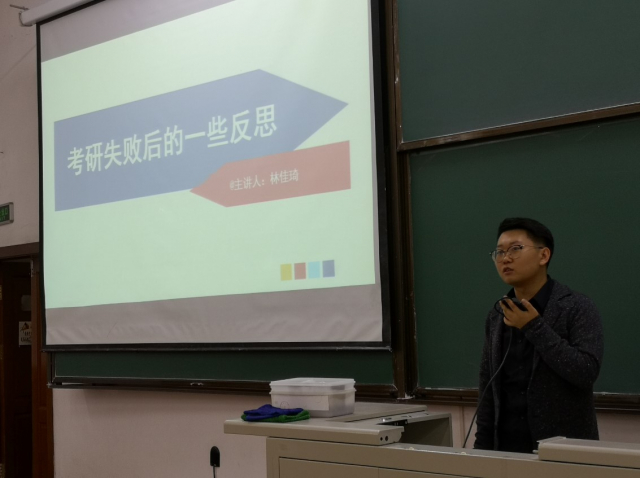 林佳琦首先为同学们分享了自己考研失利的经历与收获,同时指出要坚守内心的想法,在考研和工作之间尽快做出抉择。然后为大家讲解了一些考外校需要准备的事情,最后分享了一些有关考研调剂信息方面的资源。任冠男则注重于分享考研的相关流程,以及每个阶段每天的复习计划和时间分配,同时为大家推荐了一些准备考研过程中需要的书籍、平台以及辅导视频。张楠结合自身经验十分详细的为大家分析了不同老师复习视频的特点,指出了各个学科的重点复习时间和复习方向,以及专业课考试的相关知识。最后三位学长的答疑环节也纷纷解决了大家的疑问。