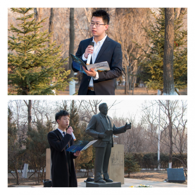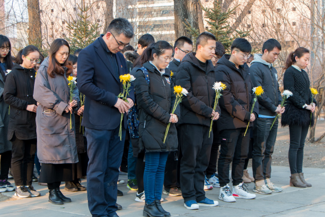 早上7点,全体人员身着黑色便服,神情肃穆,排列整齐,默哀一分钟后,按照顺序向马祖光院士敬献鲜花。陈孟石同学作为学生代表,饱含深情地讲述了马祖光院士的感人事迹。马祖光院士厚德博学,是激光领域驰名中外的学者;他克己奉公,生活上极尽勤俭,对党和国家鞠躬尽瘁;他淡泊名利,“三拒院士”的事迹广为流传;他甘为人梯,为祖国培养了一批又一批人才;他谦逊质朴,用行动塑造了当代共产党人的良好形象。同学们认真聆听,无不为之动容,马祖光院士的崇高品质和伟大精神在每一个人心中刻下烙印。