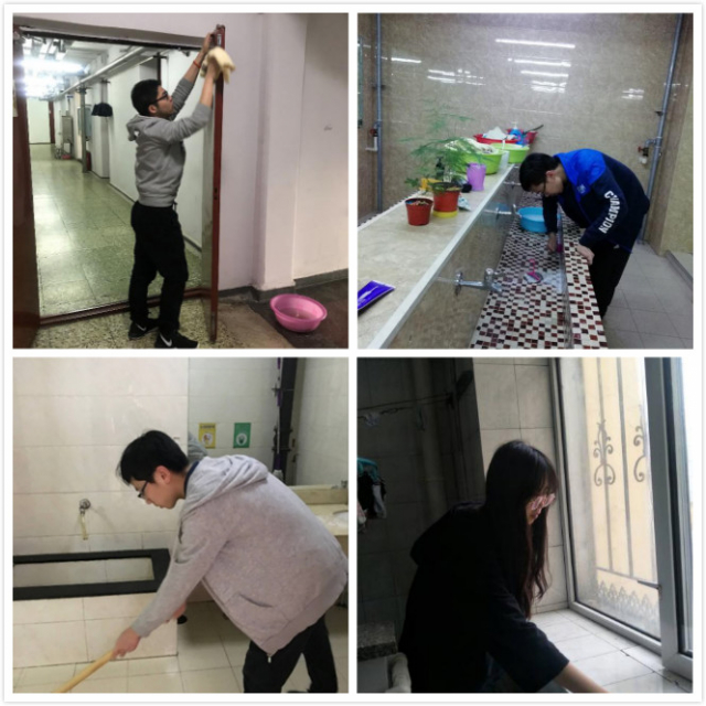 17级本科生入党积极分子小组积极发挥带头作用,帮助二公寓阿姨打扫公寓卫生。