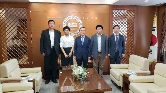 6月13日,李炳熙教授、何玉荣教授以及张昊春副教授在汉阳大学访问,汉阳大学校长韩国翰林院院士Woo Seung Kim教授和韩国工程院/翰林院院士Kwan Soo Lee教授在校长办公楼会议室热情接待。汉阳大学校长韩国翰林院院士Woo Seung Kim教授简要介绍了汉阳大学的创办历程、学生规模、学科设置、对外交流与合作等情况。汉阳大学校长韩国翰林院院士Woo Seung Kim教授表示,哈工大与汉阳大学都是世界知名的工科强校,建立合作交流关系已经多年,希望继续强强合作,进一步加深在学生联合培养、教师互访、科研合作等方面的合作。
