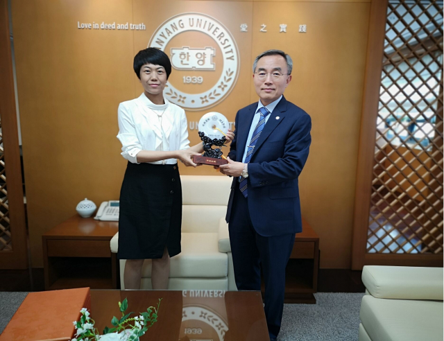 女性自慰 何玉荣教授向汉阳大学校长韩国翰林院院士Woo Seung Kim教授