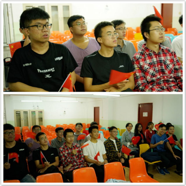 2017级本科在二公寓电视厅组织观看了国庆文艺晚会。
