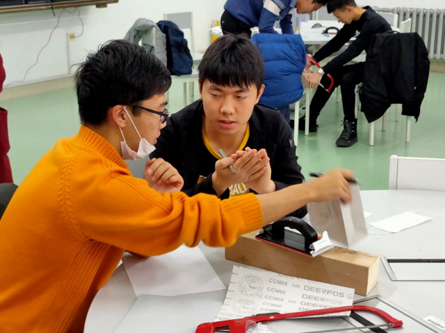 活动开始,由田耀鹏同学为10余组参赛队伍讲解风力叶片的制作过程以及叶片设计大赛的比赛规则。之后,参赛同学利用准备好的材料及工具,开始制作风力叶片,整个过程历时近三小时。活动最后,由科协成员对所有参赛同学设计的叶片进行检查、测试,并以叶片在相同风力下产生的电压的大小来评判优秀的设计作品并给予表彰,最终评出一等奖一名,二等奖两名,三等奖两名。