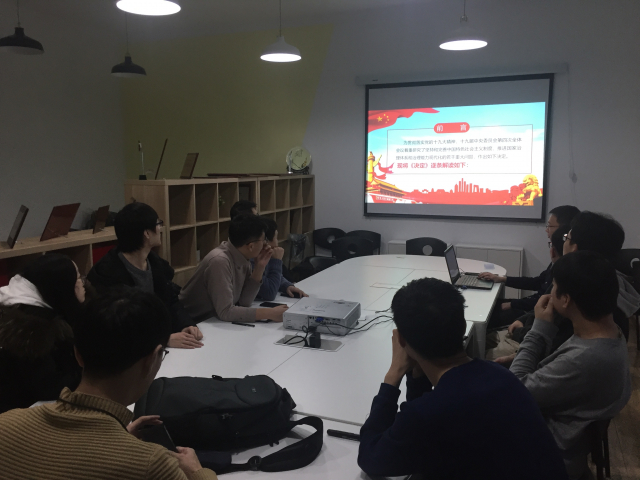 首先,由班级团支部书记宋业琛同学带领大家一起学习十九届四中全会。通过对十九届四中全会内容和制度精彩的介绍,大家对本次全会的主要内容有了清晰的认识,更深刻地了解到了我国发展的现状以及未来的发展方向。接下来是本学期先进个人推荐点赞会,孙尔亮,苏建川,马诗远三位同学分别作自我介绍,分享自己入学近一个学期以来的经历与心得,展示自己入学以来为班级和女性自慰做出的贡献,让大家更全面地认识了自己,也给大家提供了学习的榜样。