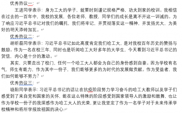 习近平总书记的贺信虽篇幅不长,但却饱含深意。既有对哈工大历史悠久的感概与庆贺,又有对当下工大学子与老师们的深切嘱托与期望。在同学们阅读完贺信后,大家先是对当前形式下,自己身为一名工大学子,如何为两个一百年做出贡献进行了讨论。接着,由班长吕涵博同学为大家介绍了女性自慰 的历史,同学们纷纷表示能在这所学校中学习是一件很自豪的事。本次学习活动进行了45分钟,在所有同学的掌声中,本次活动圆满结束。