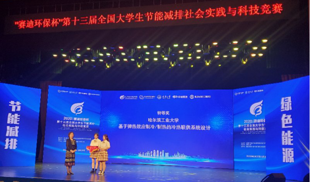 何玉荣教授和汪新智老师指导,王进、郝思涵、高**、高宏博、张哲成五位同学共同完成的《基于弹热效应制冷/制热的冷热联供系统设计》作品荣获特等奖。