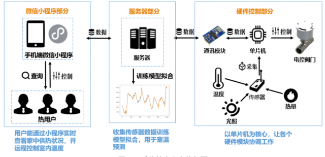 项目介绍:我国每年的集中采暖能耗达2亿吨标准煤,其中用户端调控手段落后造成的热量浪费占总能耗的18~26%。针对采暖系统用户侧能源浪费严重的问题,项目组设计了一种智慧供热用户端系统。能够基于大数据分析用户的行为习惯,在此基础上为人的自定义和系统自主控制提供方案;针对不同建筑热惯性热迟滞性不同的问题,通过数据积累和自主学习来给出自适应的控制方案;设计微信小程序与用户交互,利用互联网和先进的通讯技术,引导人们的节能习惯,让用户可以更方便、更有兴趣地使用我们系统。