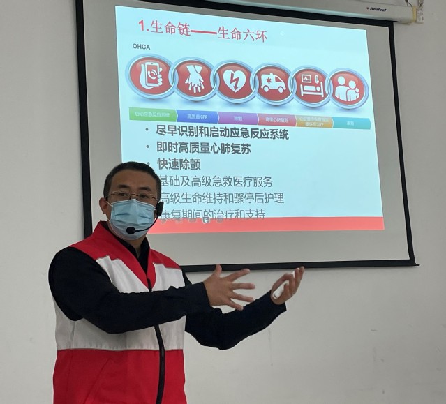 理论培训方面,谭志强老师首先介绍了近期发生的甘肃马拉松事件,讲述了深圳市民和清华大学等利用心肺复苏和AED设备的真实案例,随后为大家讲授了现场急救的安全、时间、告知和科学四条原则,之后谭老师又为大家讲解了脑卒中、溺水、癫痫、心源性疾病等常见的急症症状与救护方法。