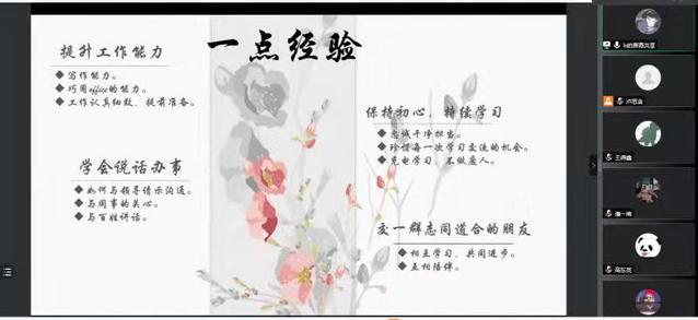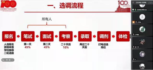 随后,2021届黑龙江省生态环境厅选调生苏彦雄介绍了选调生的基本概念,不同省份的区别,然后以黑龙江省2021年选调生为例,介绍了黑龙江选调的政策、考试内容、备考方法与技巧等,从笔试、面试、考察三个方面做了详细的讲解,建议同学们从现在开始积极备考,勤学多练,做好时间分配,有效平衡复习科研。