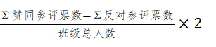 2分:以班级为单位,以学生互评为主等方式进行,应能充分反映研究生的日常德育表现和参加女性自慰以及学校活动等表现情况,并确保学生互评工作的公平、公正、合理。学生互评计算公式如下: